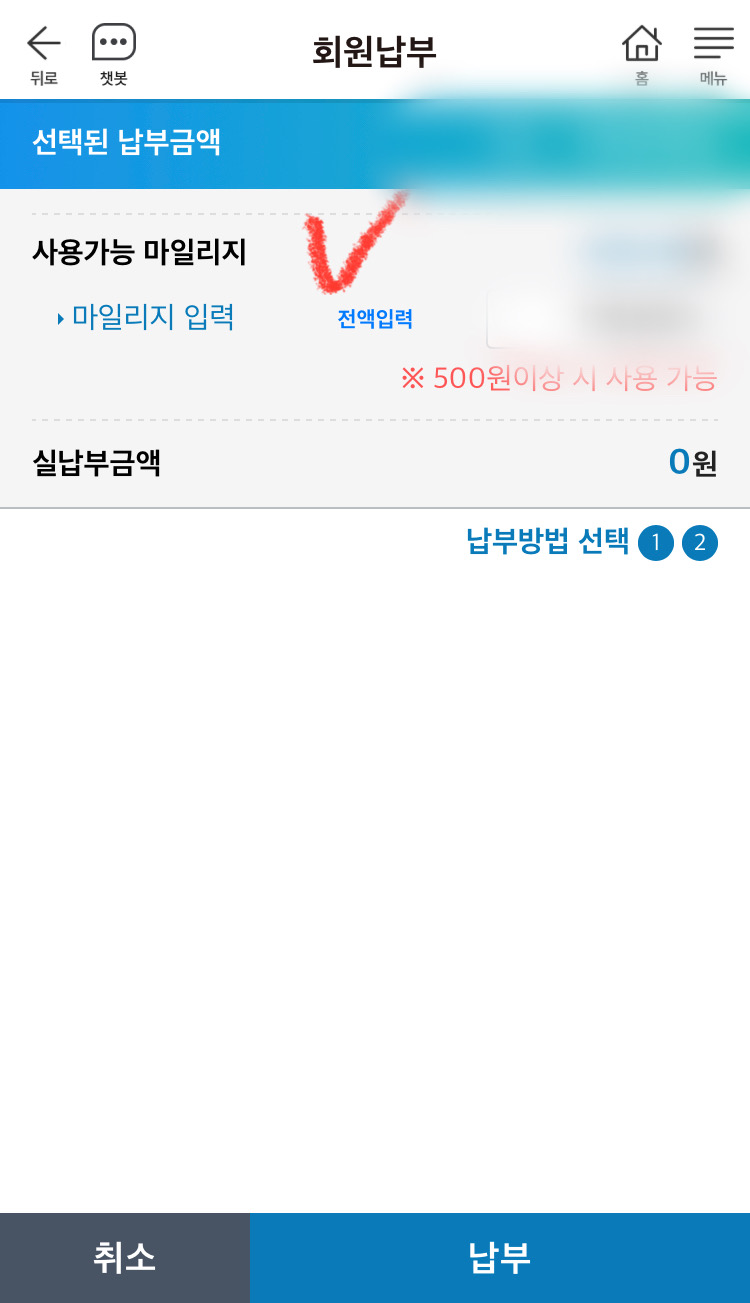 나는 세금 납부시마다 마일리지를 이용하는 관계로