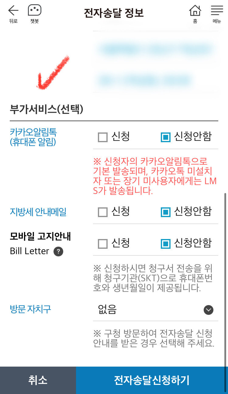 나중에 다 사용하고 나면 전자고지서 번호를 입력하고 타인 세금납부 하여 이용예정